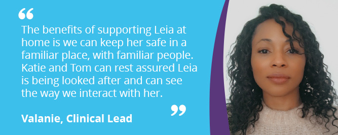 She continued, “I worked with the parents to create a specialist care plan to make sure it reflected everything about Leia, despite her being non-verbal and having challenges. We wanted to make sure it captured everything about her so that our staff were able to support her well.”