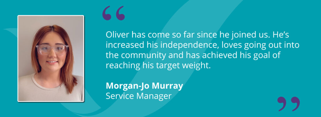 Due to Oliver’s struggles around food in his previous home, his support team worked closely with him to ensure he was making healthy choices and eating the right amount of calories to achieve his weightloss goal.