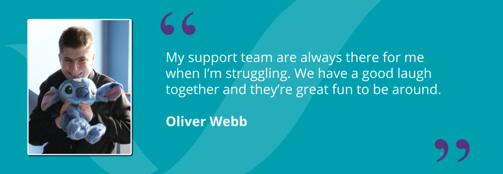 Oliver’s support team ensured the creation of a person-centred care plan tailored to his individual needs, to help overcome these challenges – supporting Oliver to gradually become more confident and achieve his goals.
