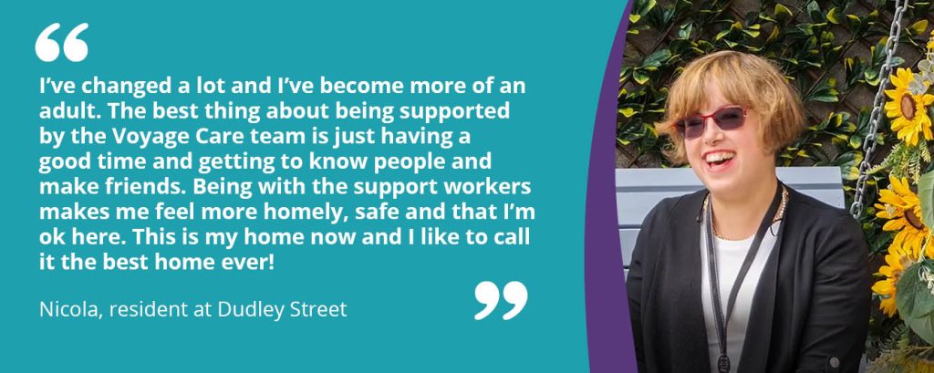Since joining Dudley Street, Nicola has embarked on a remarkable journey, developing her self-confidence and independence by creating positive and trustworthy relationships at the home and within the community. Improvement in her social interactions and wellbeing has meant that the team could really focus on building Nicola’s day-to-day life and social skills, and as a result, her quality of life has improved!