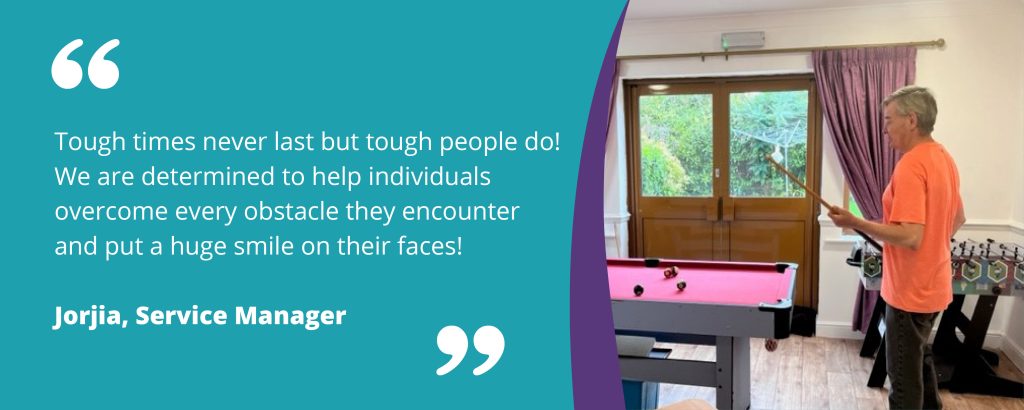 With the care, understanding and commitment of his team, Simon’s one step closer to living by himself again, which he truly wants and deserves. Always on the go, he loves interacting with other housemates and loves a game of pool in the activity room. He also enjoys participating in group activities, which is helping him to regain important social skills.