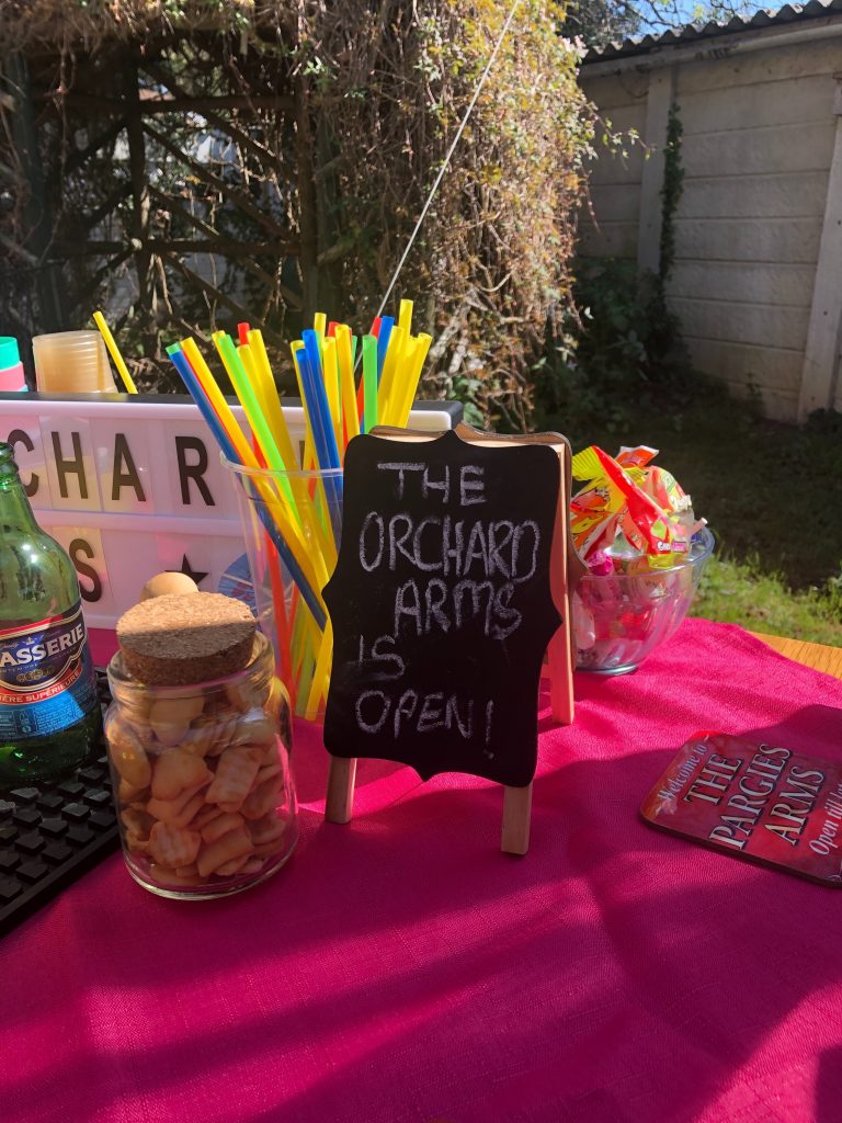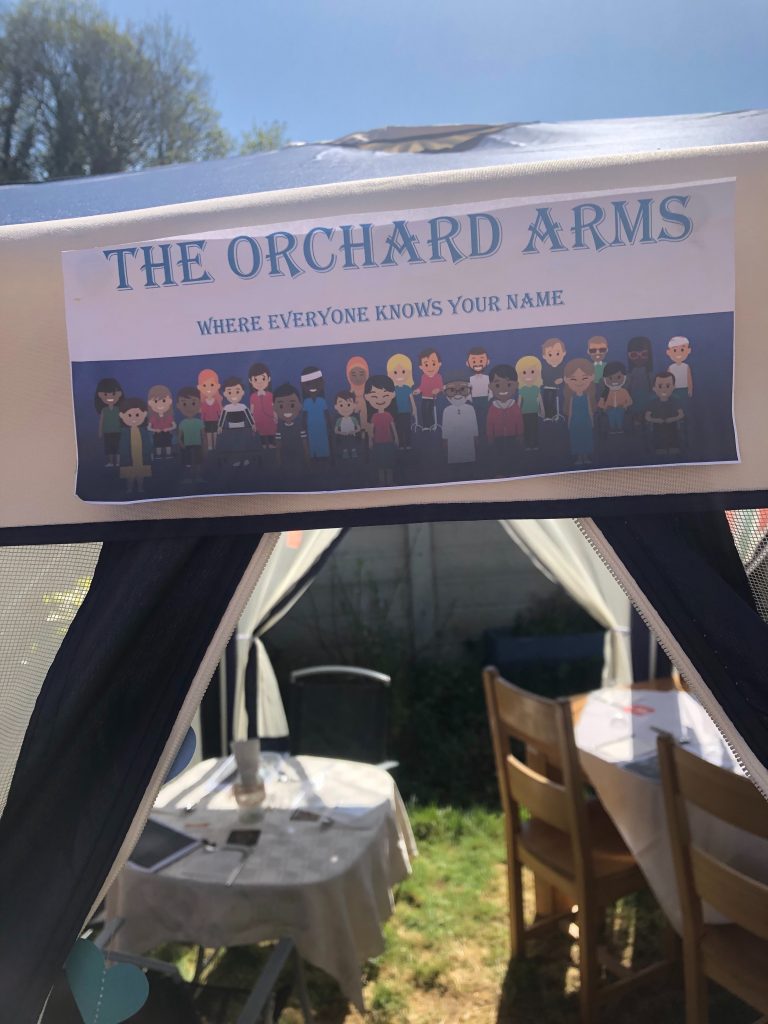 The people we support at Orchard Leigh were really missing their regular pub nights, so the service have created the Orchard Arms in their garden, complete with pub atmosphere! The homemade pub has all their favourite drinks and pub grub to them to enjoy. Even the bottles of pop and juice have special Orchard Arms stickers on them.