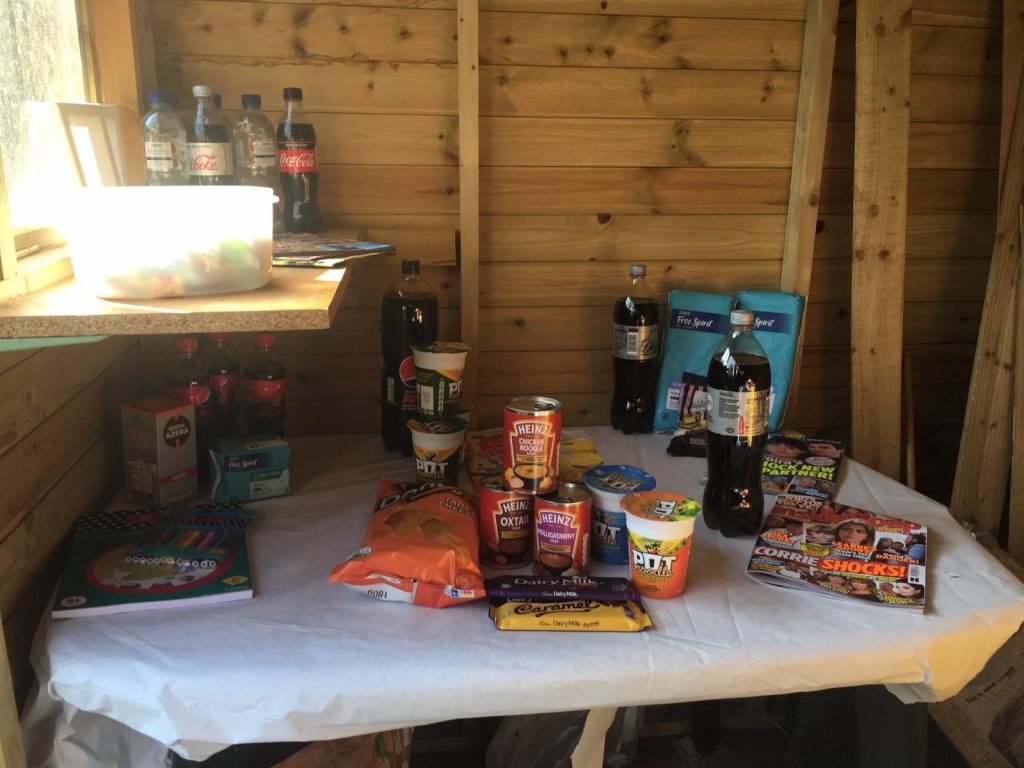 Everyone living at the service helped to create signs, banners and rainbows to put up to decorate the tuck shop, which was created in the garden shed.