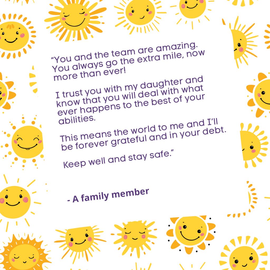 “Staff have gone above and beyond to bring the outside world in for the residents at Red House. I go into the front line next week in the knowledge they will keep my daughter safe” said Anne-Marie.