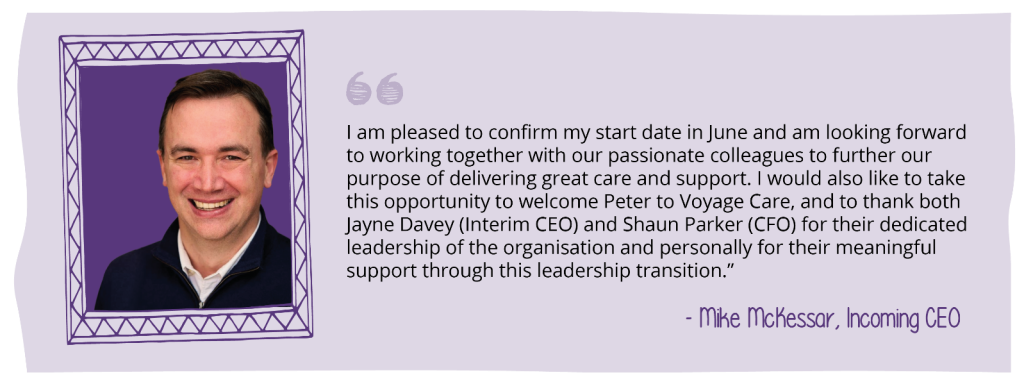 As part of the planned transition to our new senior leadership team we can confirm that Mike McKessar, our incoming Chief Executive Officer, will be joining Voyage Care on 17 June. Mike’s values and ethos are fully aligned to our purpose of delivering great quality care and support for people with complex needs. Voyage Care continues to maintain its sector leading quality outcomes and, under Mike’s leadership, is well positioned for continued growth, supported by Wren House’s long-term, committed ownership.