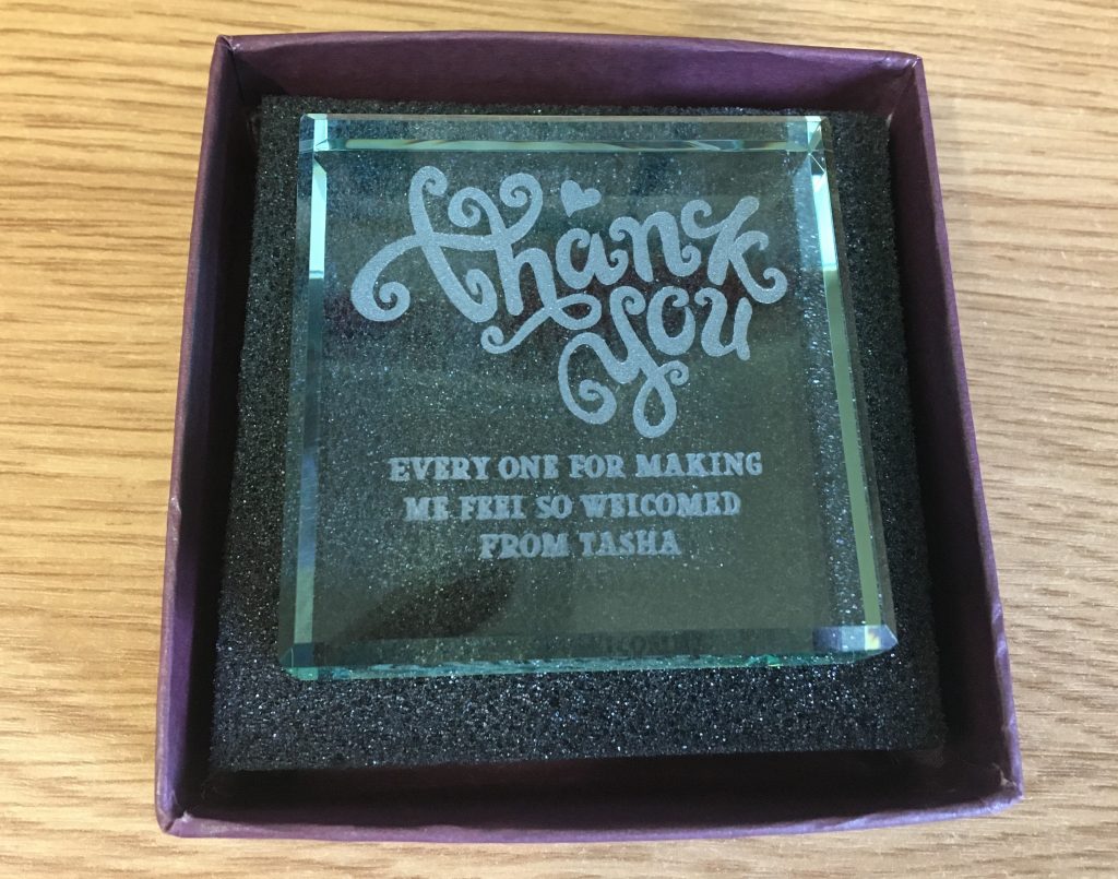 To thank everyone for their warm welcome, she bought them a lovely plaque: