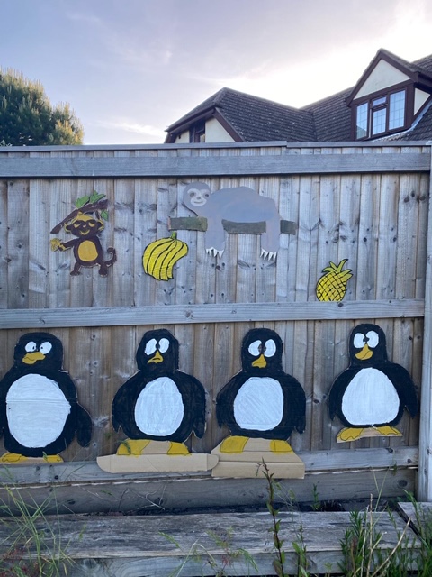 Once the zoo was complete, the animals were spread around the garden. From monkeys hanging from the washing line to meerkats in their giant Connect 4 game!