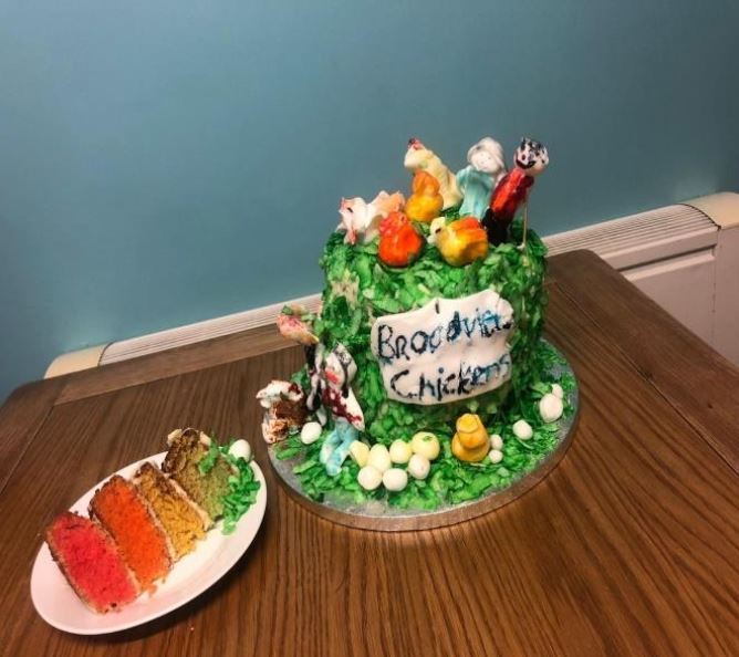 It is now increasingly common, especially in these months of sunshine, to find the residents of Broadview all sitting together in the garden, as a community, as a family; you’ll also often find our former “new resident” right in the middle, chatting to everyone, grinning from ear to ear with ‘Ginger’ the chicken enjoying a cuddle on her lap.