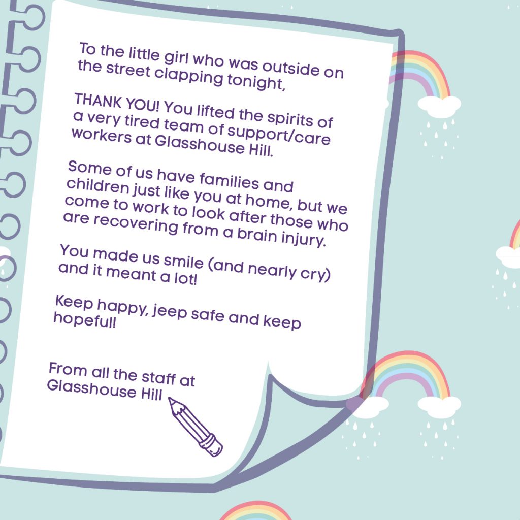 The people we support have been doing lots of smiling in lockdown. Clapping on a Thursday has become a routine for many of them. Some spending days making banners, looking forward to making as much noise as possible for the frontline workers.