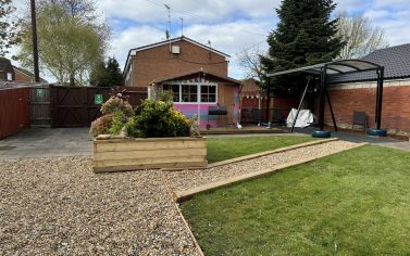 Our spacious detached home features a large kitchen, bathrooms, living room and dining room with doors leading onto the patio. There’s also a large, landscaped garden and vegetable patch – perfect for those with green thumbs!