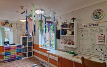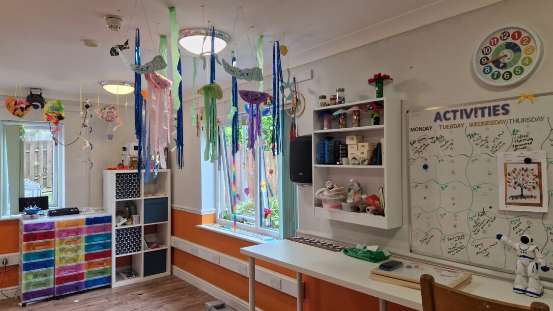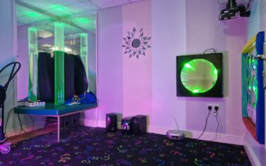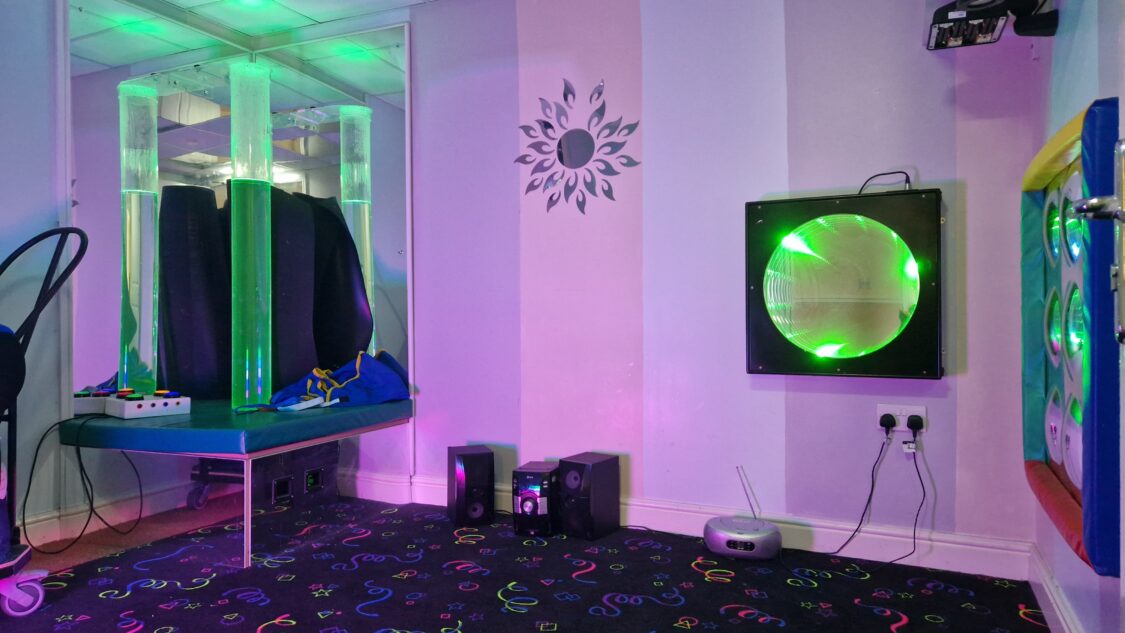 We have an activity room and a sensory room equipped with a bubble tube, various lights, and sounds.