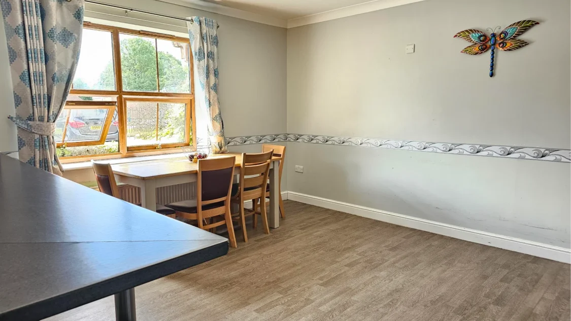 Our bungalow home has 12 large bedrooms, each equipped with en-suite facilities. We also have a selection of shared communal areas including two bathrooms – one with a hoist and the other with a seated bath, two large kitchen-diners, two lounges and a sensory room. Plus, we have a rear garden which has both pavement and grass for enjoying the great outdoors!