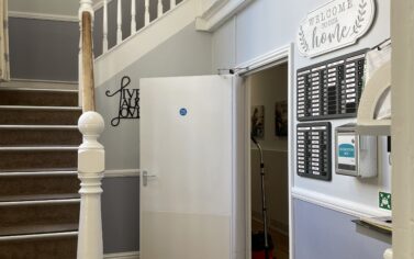 There are three shared bathrooms on the first floor, and a shared shower room and wet room on the ground floor. Three of the bathrooms have overhead hoist facilities – perfect for those with mobility needs.